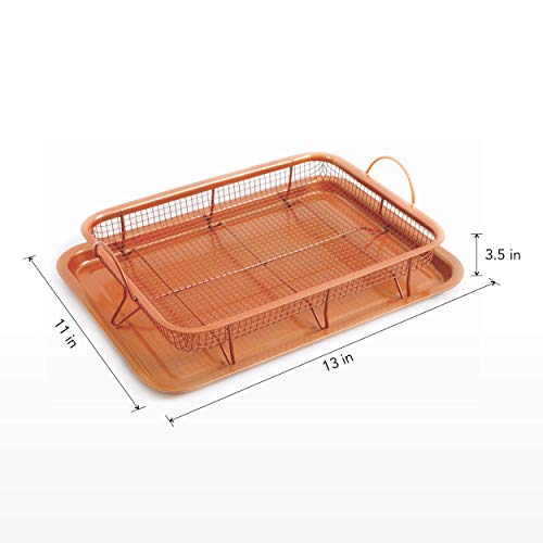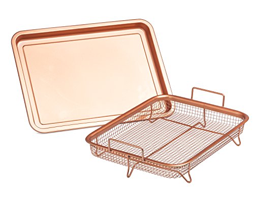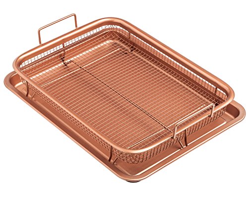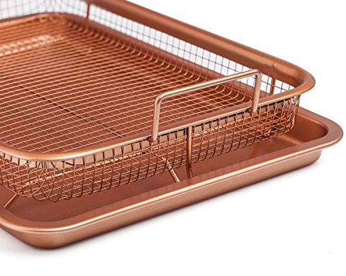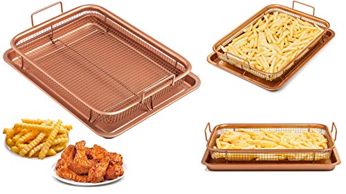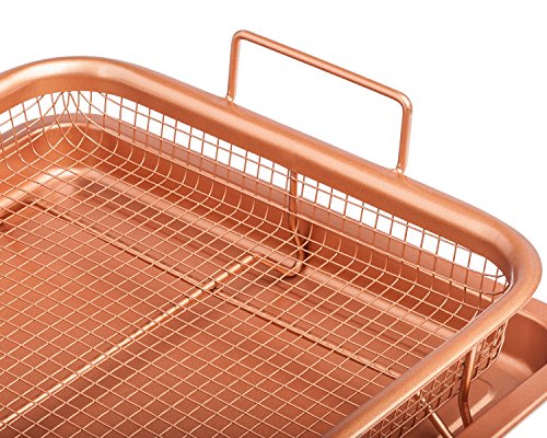 Chef's Star - صينية نحاسية من شيفز ستار - صينية بسكويت مطلية بالسيراميك وسلة شبكية غير لاصقة - خيار قلي هوائي صحي خالٍ من الزيت للدجاج والبطاطس المقلية وحلقات البصل وغيرها