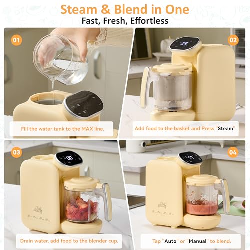 - متعددة الوظائف - تحتوي آلة تحضير طعام الأطفال على الطهي بالبخار والتذكير بنقص المياه والخلط التلقائي والخلط اليدوي ووظائف تسخين الحليب. محضر طعام الأطفال هذا مناسب لجميع الفواكه والخضروات واللحوم، كما أنه قادر على تسخين الحليب والحفاظ عليه دافئًا. جهاز بخار وخلاط للأطفال في جهاز واحد، مما يسمح للأمهات بإعداد طعام الأطفال بسهولة وسرعة.