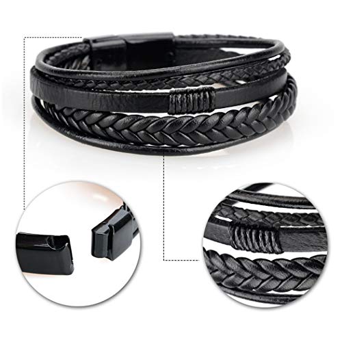 Chengxun - سوار معصم رجالي من تشينغكسون جلد اصلي مصنوع يدويًا بلون اسود مفتوح ملفوف غير معروف