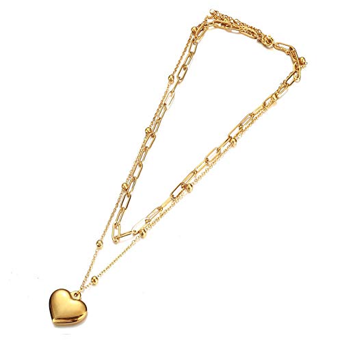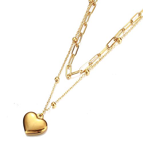 Chereda - سلسلة بدلية على شكل قلب متعددة الطبقات مطلية بالذهب بعيار 14K ومشبك من ستانلس ستيل مناسب لحفلات شيريادا للنساء