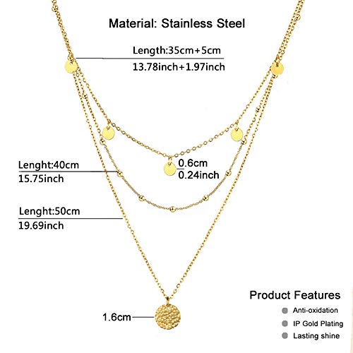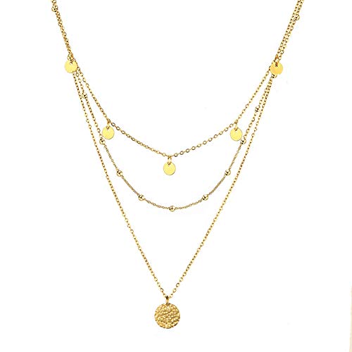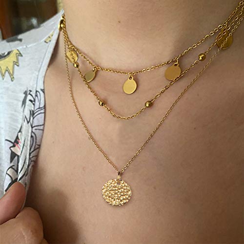 Chereda - عقد بقلادة على شكل قرص عملة معدنية مطروق للنساء والفتيات من الستانلس ستيل مطلي بالذهب مجوهرات هدية للحفلات