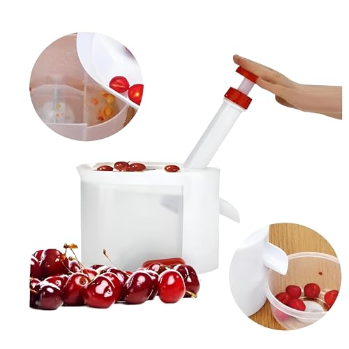 Generic - مستخرج حفرة الكرز - اداة بلاستيكية عالية الكفاءة مع حاوية مصيدة مدمجة لحفر الكرز امن وهادئ وصحي في اي مطبخ لون ابيض (قطعة واحدة)