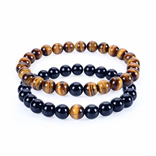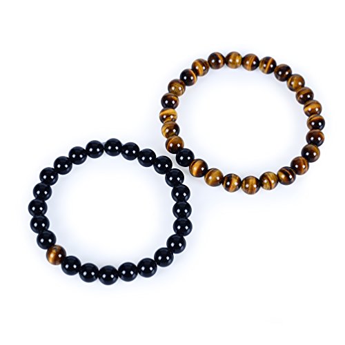 Cherry Tree Collection - سوار للازواج المتباعدين من شيري تري كوليكشن | له ولها | خرز احجار كريمة مرن 8 ملم دائري | احجام مختلفة Large-Medium حجر للنساء للبالغين الجنسين