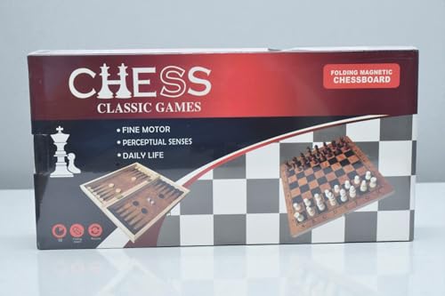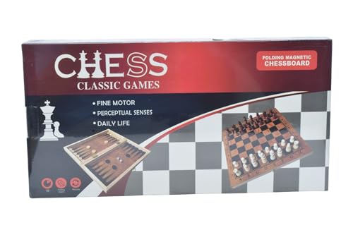 Generic - لوح شطرنج مغناطيسي قابل للطي للاطفال من عمر 8 سنوات فما فوق - بيج واسود