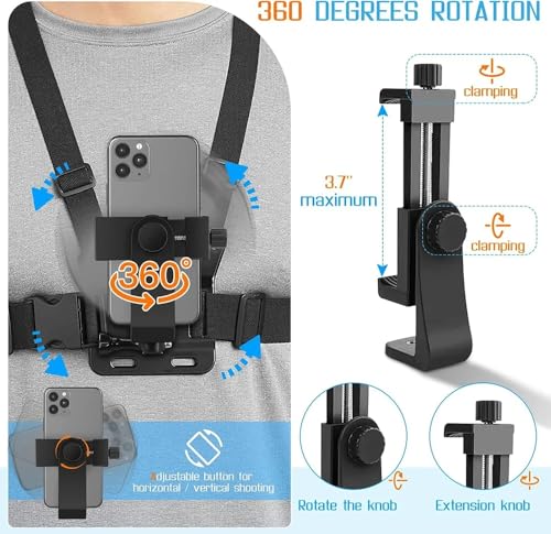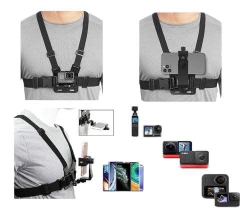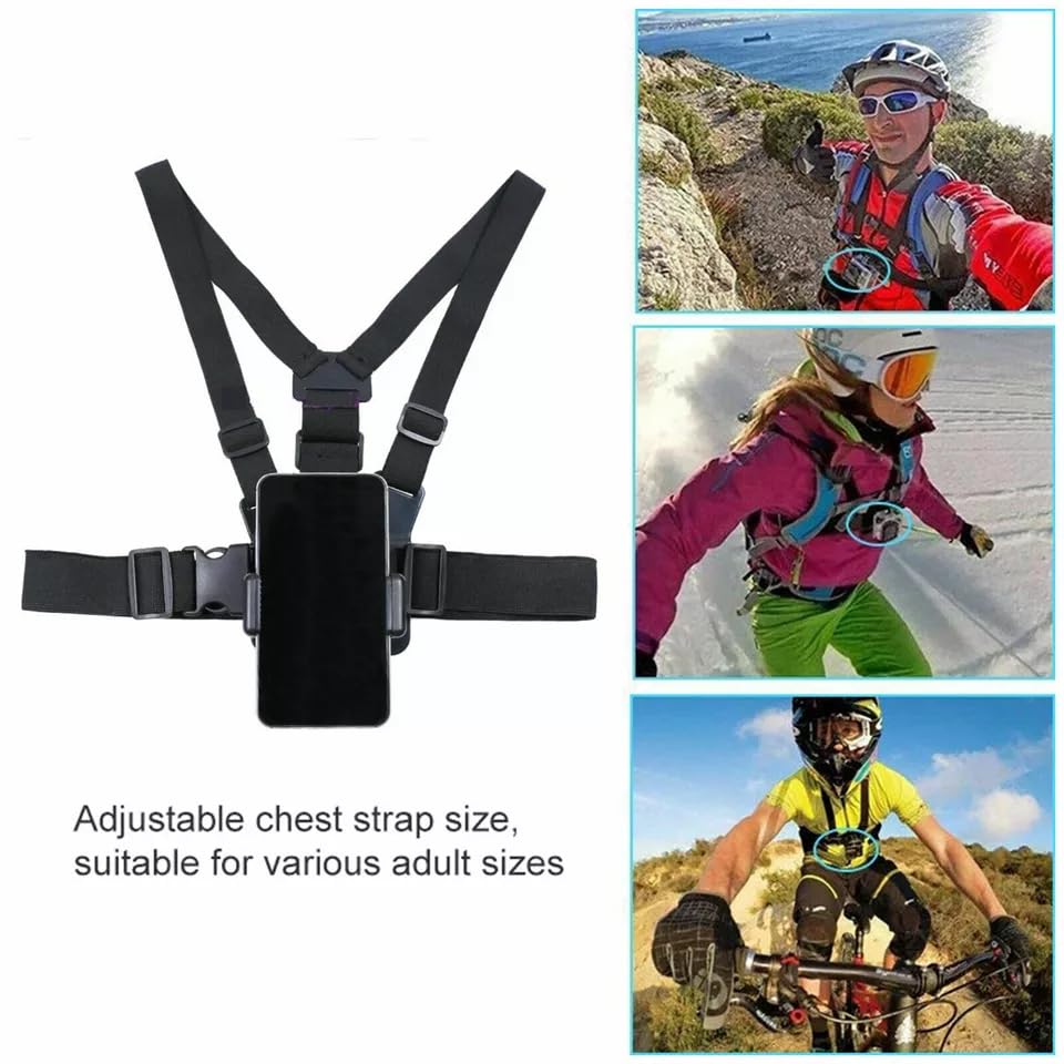 - حامل وحزام صدر بمشبك عالمي للموبايل حزام مضاد للانزلاق بزاوية 360 درجة، لكاميرا الويب، كاميرا الاكشن، بي او في، متوافق مع جوبرو ..إلخ. للرياضة والجري وركوب الموتوسيكلات وغيرها