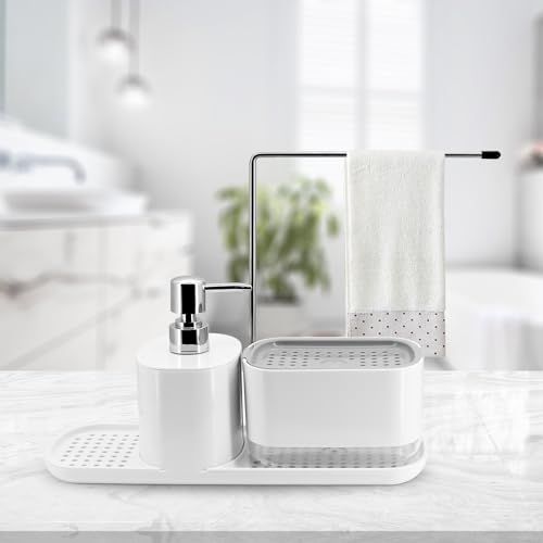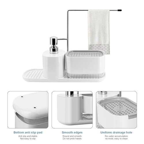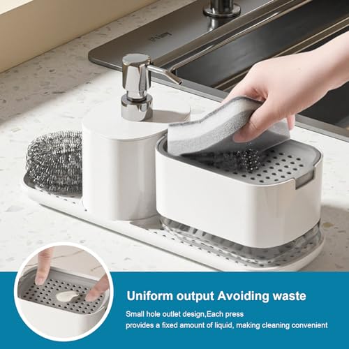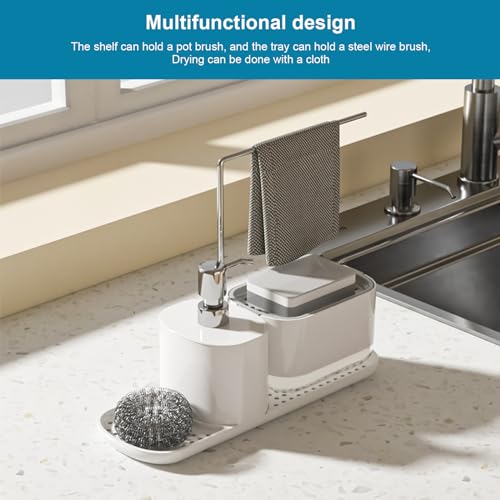 CheurYae - مجموعة موزع سائل الغسيل للمطبخ من شورياي، منظم حوض 3 في 1 مع موزع صابون، حامل إسفنجة ورف تخزين قماش، منظف قابل لإعادة الملء