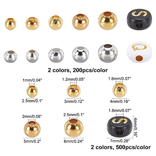 CHGCRAFT - مجموعة خرز واسع مستدير من الاكريليك ناعم واسع لصنع القلائد والأساور بنفسك من تشجكرافت، مكونة من 2600 قطعة، 2 لون ذهبي وفضي