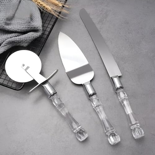 Generic - مقابض اكريليك أنيقة - مجموعة تقديم الطعام المكونة من ثلاث قطع مثالية للكعك والحلويات، تتميز بشفرات حادة من الستانلس ستيل ومقابض أكريليك أنيقة لتجربة طعام عصرية.