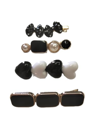 - طقم مشابك شعر شيك اسود وابيض للنساء - 4 قطع