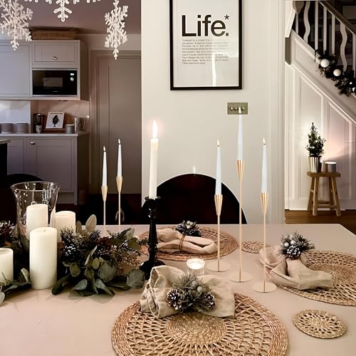 - مناسب لجميع أنواع الديكور، حامل الشموع هذا يندمج بسلاسة في أي مكان، سواء كانت غرفة معيشة مريحة أو منطقة طعام رسمية أو مكتب أنيق. يعزز البيئة، مما يجعله يشعر بمزيد من الجاذبية والدفء.