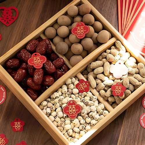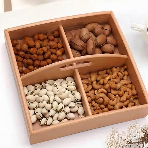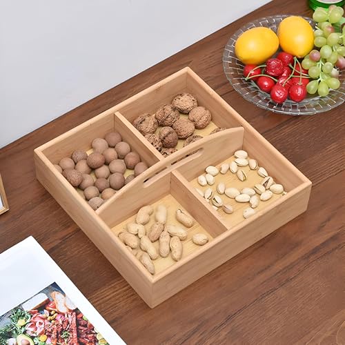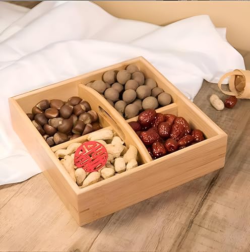 Generic - حامل حلوى أنيق - مصنوع من الخيزران الطبيعي، يتميز هذا الصندوق الأنيق بأربع مساحات تخزين لتقديم الحلوى المتنوعة خلال التجمعات والمناسبات.