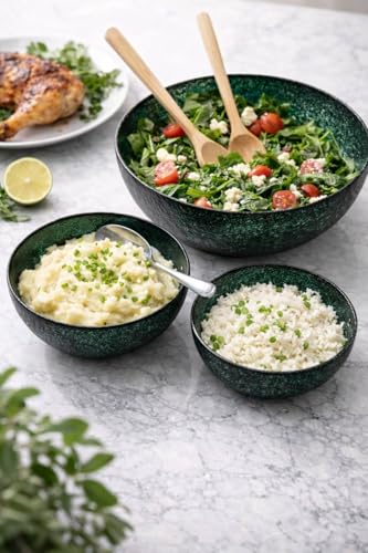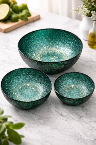 - 【هيكل زجاجي متين】 مصنوعة من زجاج أخضر عالي الجودة، تتحمل مجموعة الأوعية هذه الاستخدام المتكرر دون أن تتشقق أو تتشقق أو تفقد لمعانها الأنيق، مما يضمن حلاً موثوقًا وطويل الأمد لأدوات المائدة للوجبات العائلية اليومية أو التجمعات الخاصة، مما يمنحك راحة البال والأناقة.