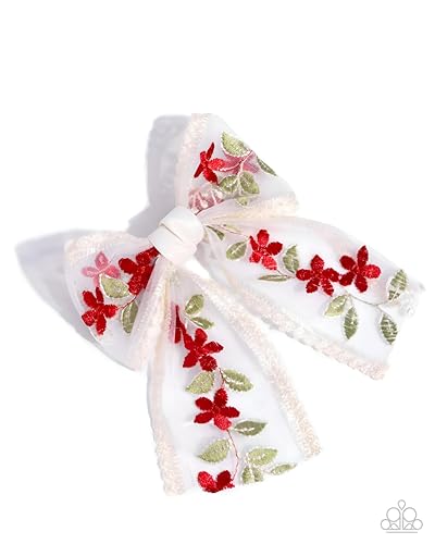 - يتميز مشبك الشعر بتطريز زهور دانتيل بيضاء معقدة، مما يضيف لمسة أنيقة إلى أي تصفيفة شعر.