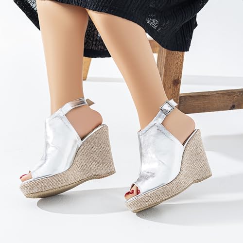 Generic - صندل أنيق بكعب عريض ويدج لامع W-8