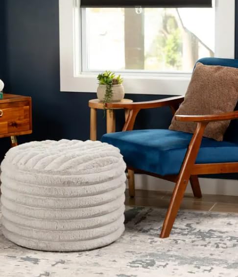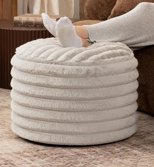 Generic - مسند قدم انيق دائري من الفرو الصناعي، مسند قدم مبطن بنسيج مضلع، مقعد فانيتي مخملي انيق، مقعد منخفض لديكور غرفة المعيشة، رمادي عاجي