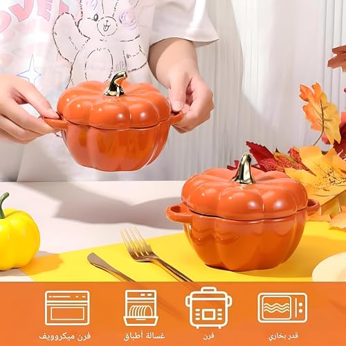 - بسعة كبيرة تبلغ حوالي 450 مل، توفر بولات اليقطين هذه مساحة واسعة للحساء أو الوجبات الخفيفة أو الحلوى الاحتفالية. يسمح حجمها بتقديم كمية مرضية، ما يجعلها مثالية لمشاركة الأطباق المبهجة في التجمعات. يلبي هذا التصميم المدروس كل من الوجبات غير الرسمية والوجبات الاحتفالية، مما يضمن لك الاستمتاع بمجموعة متنوعة من الوصفات ذات طابع الخريف سواء كنت تستضيف أصدقاء أو تستمتع بليلة مريحة.