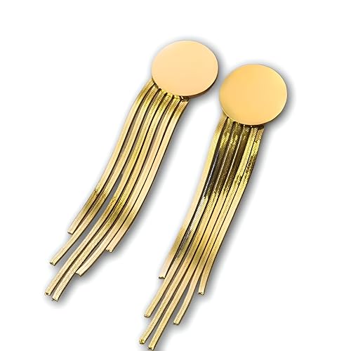Generic - حلقان طويلة أنيقة بشراشيب مصنوعة من الفولاذ المقاوم للصدأ مطلي بالذهب عيار 18، مزينة بسلسلة أنيقة وتفاصيل متدلية، للنساء والبنات المراهقات