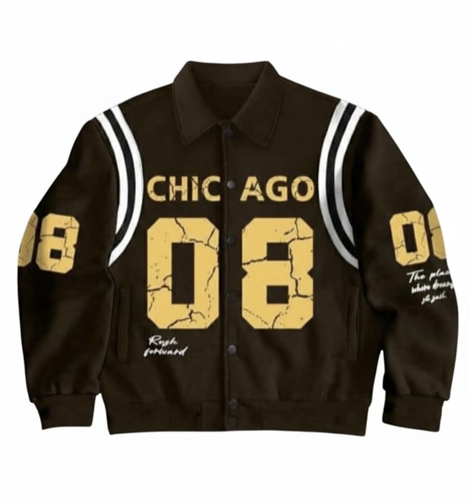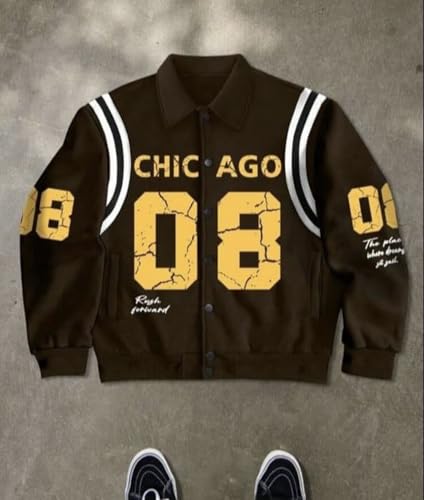 Generic - جاكيت بيسبول شيكاغو 08 باكمام طويلة بنمط شعار الخريف للرجال، مقاس XXL
