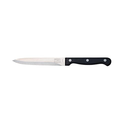 Chicago Cutlery - سكين مسنن متعدد الاستخدامات اسينشال من شيكاجو كاتلري 12 سم، شفرة من الفولاذ المقاوم للصدأ مع حافة مطحونة مدببة، مقبض معدني بالكامل، سكين مطبخ بمقبض بوليمر أسود