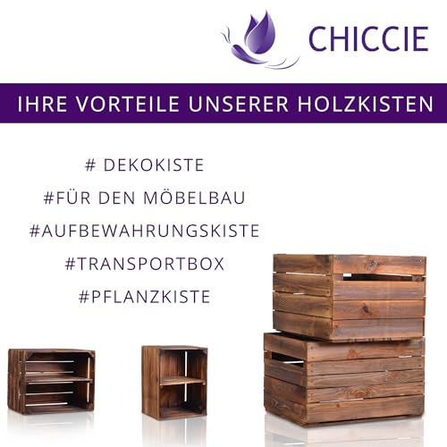 CHICCIE - صندوق خشبي بتصميم عتيق برف قصير من تشيتشي - فليمد دارك - صندوق فواكه للديكور، مقاس 50 × 40 سم