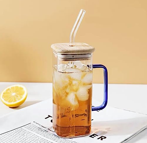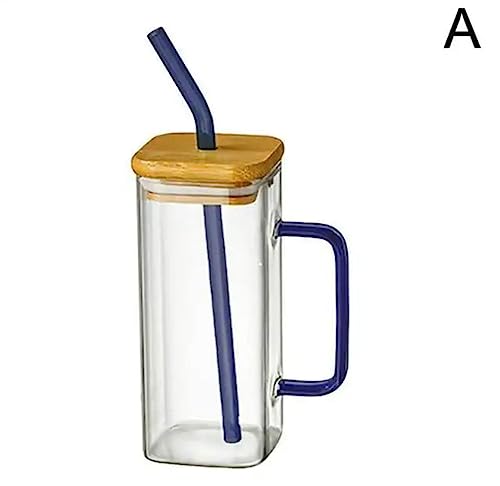 Year - يير كوب مربع سعة 13.5 اونصة مع غطاء خشبي وشالميو او بدون نار مستقيم للعصائر والكوكتيلات الشاي والكابتشينو والمشروبات الساخنة المثلجة من بايركس ازرق وشلمو