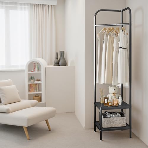 - تصميم موفر للمساحة: يتميز منظم الملابس المبتكر هذا برف تخزين من طبقتين في الأسفل وقضيب تعليق في الأعلى، مما يعزز المساحة المحدودة في المناطق الضيقة بفعالية.