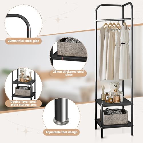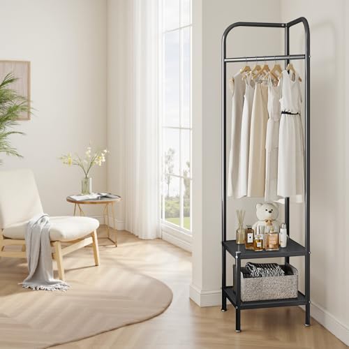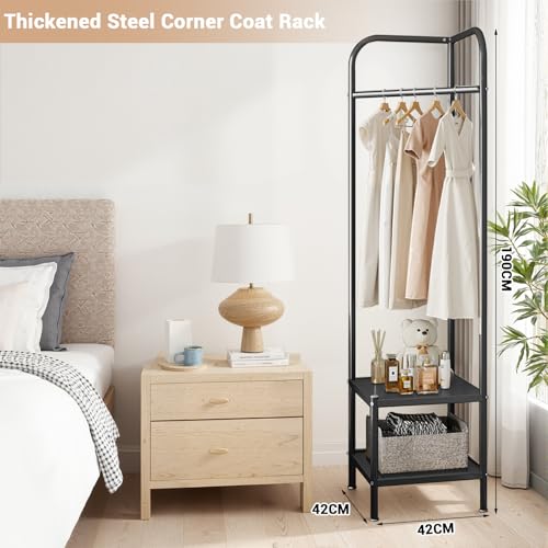 ChicHabitat - منظم معاطف زاوية، رفوف ملابس شديدة التحمل على شكل شجرة، رفوف ملابس قائمة بذاتها، منظم رفوف من المعدن للأحذية والملابس للمدخل وغرفة النوم، بلون أسود من شيك هابيتات