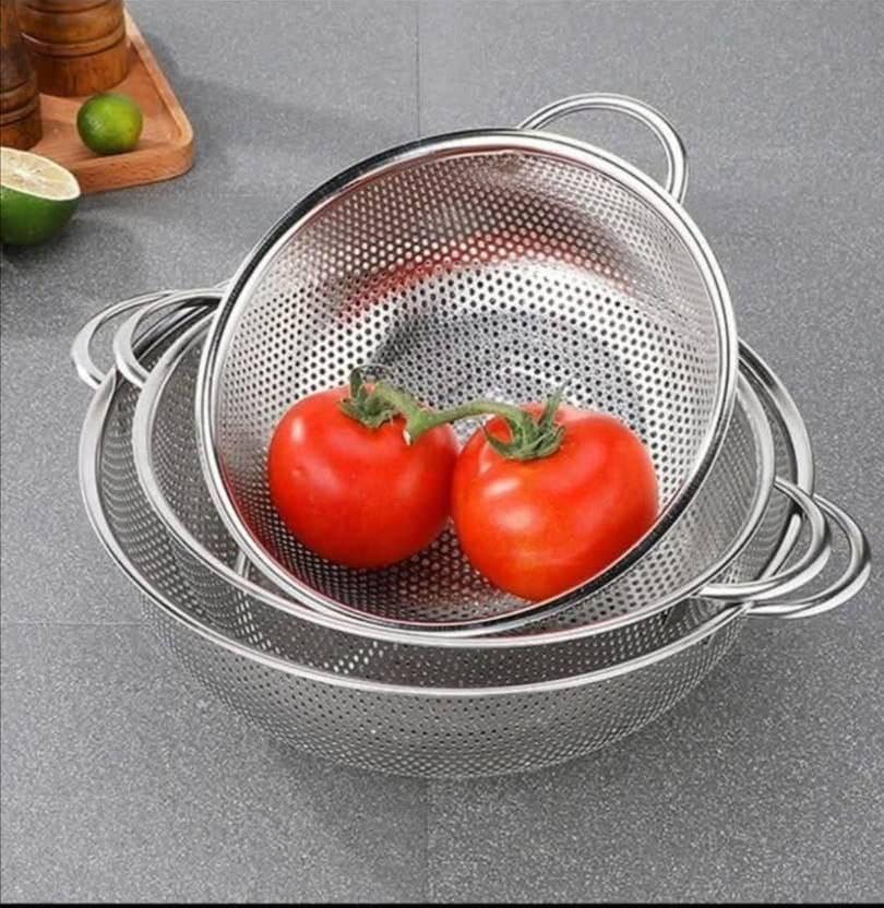 - يأتي الطقم مكون من 3 قطع، بمصفاة وإناء وغطاء، مما يوفر تجهيزًا كاملاً لغسيل الخضروات والفواكه.