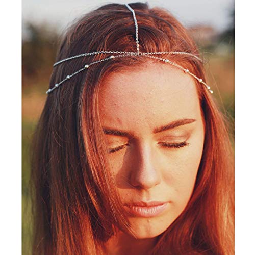 Chicque - شيك كيو سلسلة راس بوهو مجوهرات بطبقات من الخرز، سلسلة شعر لحفلات الزفاف والمهرجانات، اكسسوارات شعر للنساء والفتيات