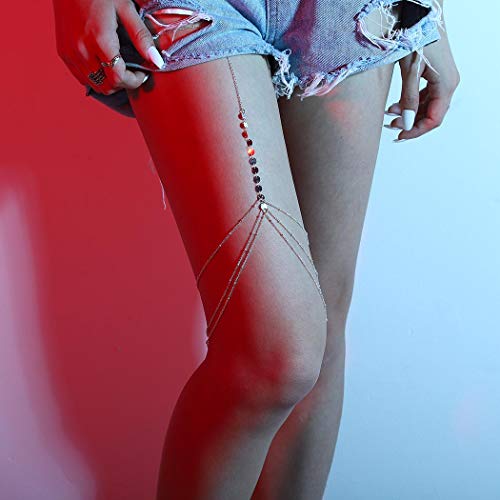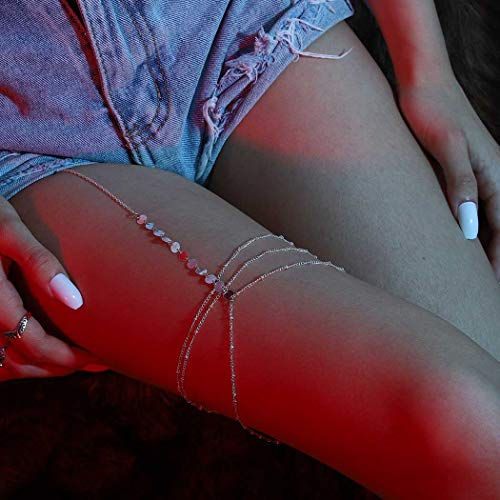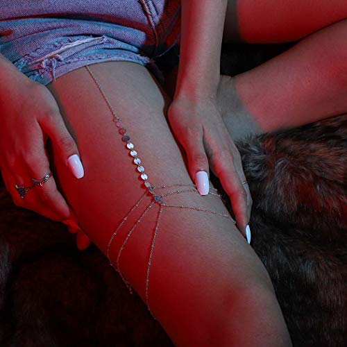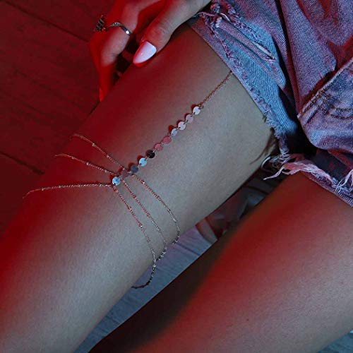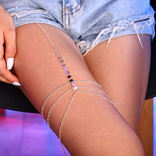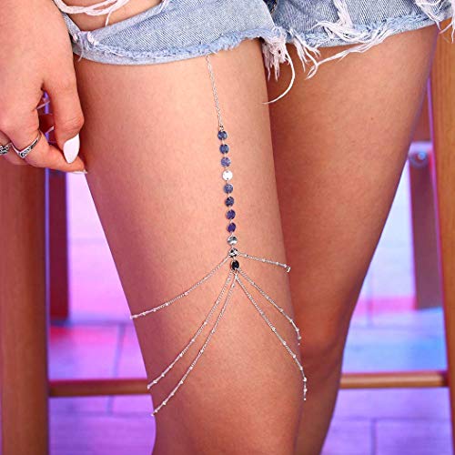 Chicque - سلسلة جسم مثيرة من شيك كيو، مجوهرات الفخذ من الخرز، مجوهرات من الترتر الفضي، سلسلة الساق من طبقات، مجوهرات الجسم لارتداء البيكيني والحفلات للنساء والبنات