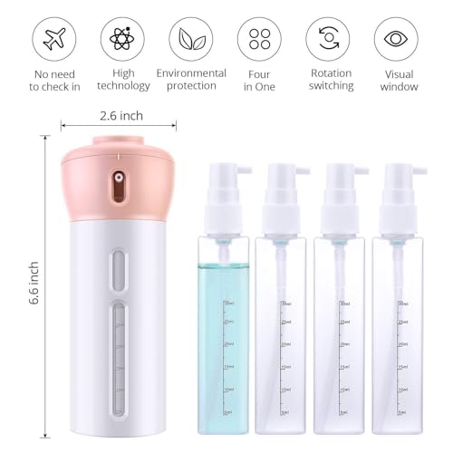 - تصميم فريد 4 في 1: اجمع بين 4 زجاجات سفر قابلة لإعادة الملء في شنطة واحدة. ما عليك سوى تدوير الجزء العلوي والحصول على وصول فوري إلى الشامبو والبلسم والمستحضرات وغسول الجسم والأمصال ومعقمات اليدين وأكثر من ذلك