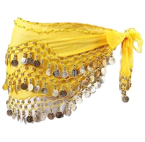 generic - وشاح شيفون للرقص الشرقي مكون من 3 صفوف مع 128 عملة معدنية، مقاس واحد، موديل 1957