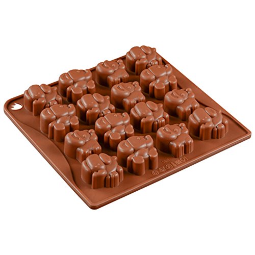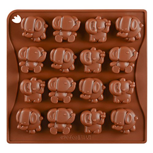 Chige - قالب حلوى على شكل فيل 16 تجويف، صينية خبز سيليكون آمنة غذائيًا وخالية من البيسفينول أ، قالب تزيين كعك غير لاصق للموس والشوكولاتة والبراوني والجيلي والآيس كريم والشيفون والتشيز كيك والفوندان من تشيج