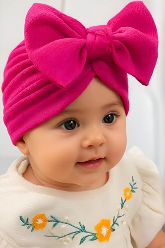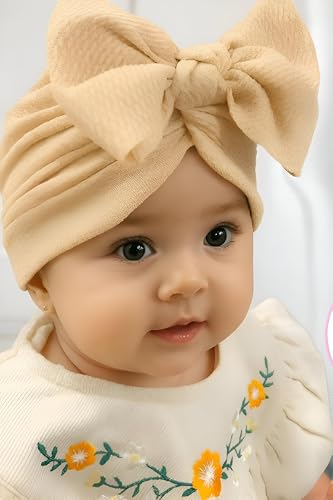 Generic - قبعة اطفال - تربون مريح وخفيف الوزن مع فيونكة كبيرة، مثالية للفتيات حديثات الولادة، ناعمة وجيدة التهوية