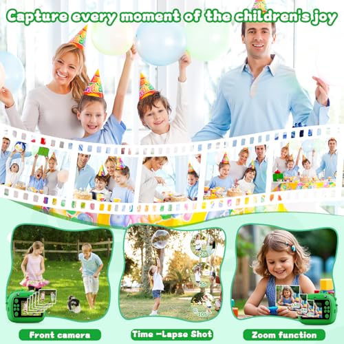 - كاميرا رقمية بعدسة مزدوجة للأطفال بدقة 48 ميجابكسل - كاميرا الأطفال هذه مجهزة بعدسات مزدوجة بدقة 48 ميجابكسل للتصوير الأمامي والخلفي، والتي يمكنها التقاط الصور والفيديو في أي وقت وفي أي مكان، حتى إذا لم يكن هناك ورق طباعة. كجزء من وظائف الصور والفيديو، يتم حفظ الصور الملونة عالية الدقة ومقاطع الفيديو بدقة وضوح 1080 بكسل تلقائيًا على بطاقة ذاكرة ذات سعة 32 جيجابايت. لا توجد إعدادات معقدة - تعزز بشكل مرح التطور الإبداعي دون مساعدة الوالدين.
