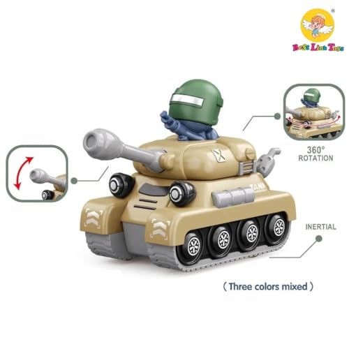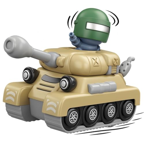 Generic - دبابة عسكرية بشكل كرتوني مرح للأطفال تعمل بالقصور الذاتي – مركبة بلاستيكية ممتعة، رأس دوّار، مناسب للأطفال (بيج)