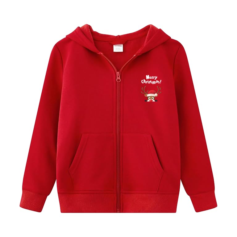Generic - سويت شيرت بغطاء للرأس وسوستة مع جيوب أمامية للأطفال من القطن بطبعة حيوان الرنة، جاكيت شتوي بنمط العطلات، لون أحمر (مقاس 3 إلى 6 سنوات)