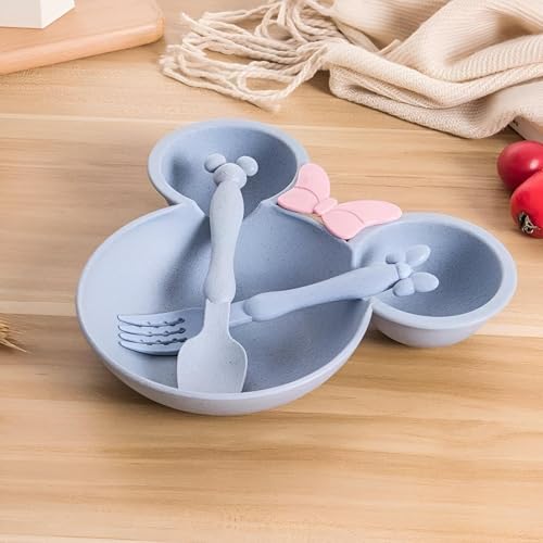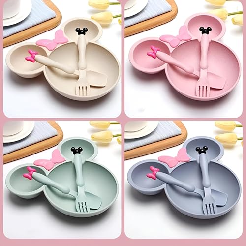 Generic - أدوات مائدة للأطفال بتصميم كرتوني جذاب من 3 أقسام، تتضمن طبق وشوكة وملعقة، مصنوعة من قش الأرز الآمن، مناسبة للميكروويف وغسالة الصحون
