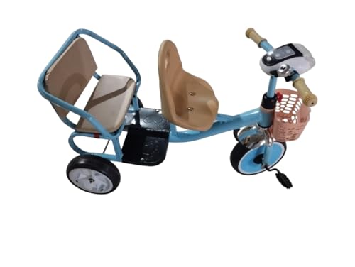 L'AMOUR - دراجة ثلاثية العجلات 608 للأطفال بمقعد مزدوج وإطار معدني، لون أزرق وبني، مقاس 95 × 40 × 20 سم