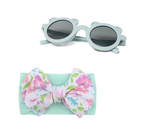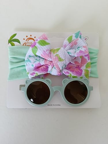 Generic - طقم طوق للرأس ونظارة شمسية للاطفال من قطعتين، اكسسوارات شعر صيفية باطار دائري ونظارات من القطن، لون اخضر فاتح، مقاس واحد