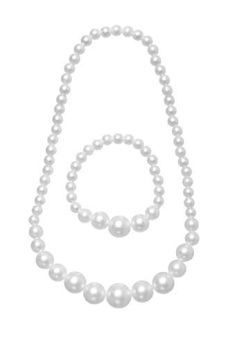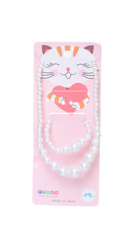 - طقم مجوهرات للأطفال مكون من سلسلة وسوار من خرز اللؤلؤ - لون أبيض