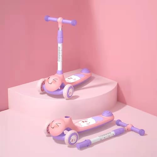 Generic - حذاء سكو اوتر مضيء للاطفال مع 3 عجلات ومقعد قابل للطي، لون بينك