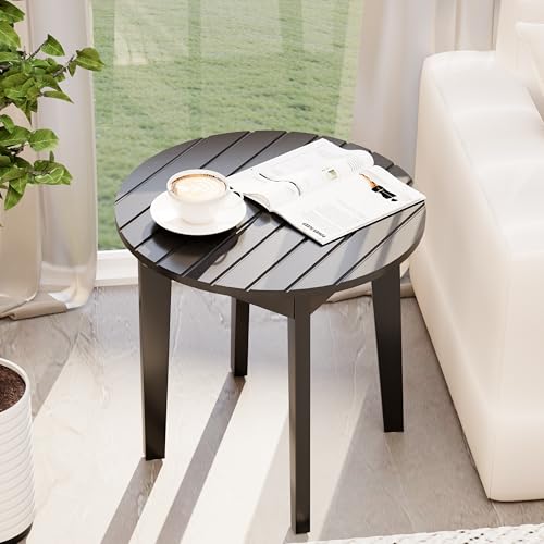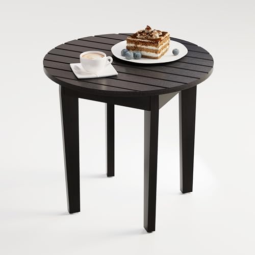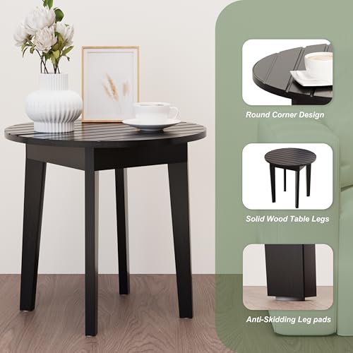 Chilihom - طاولة قهوة جانبية خشبية صغيرة مستديرة للمساحات الصغيرة بـ 4 أرجل من تشيليهوم، لون أسود