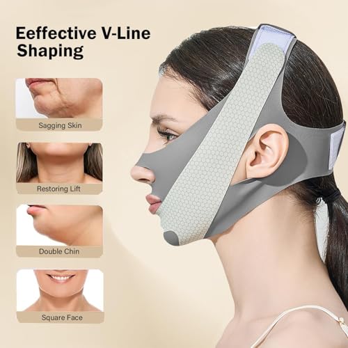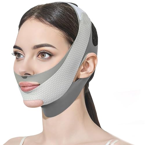 Generic - حزام ذقن للنوم شكل V، حزام ذقن لشد الذقن شكل V، أداة تمرين الفك، حزام وجه قابل لإعادة الاستخدام، حزام تشكيل خط الفك، لون رمادي