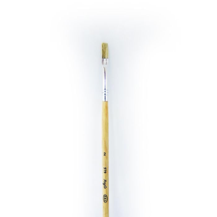 China Fine Arts - فرشاة فنية ذات شعيرات مبيضة من تشاينا فاين ارتس 579 بمقبض خشبي مسطح، مقاس 2