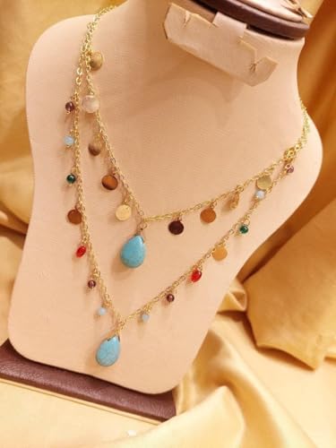 Generic - سلسلة بنمط بابين من الذهب الصيني مع خرز ازرق