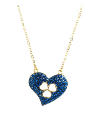 Generic - سلسلة ذهب صيني بدلاية على شكل قلب مرصعة بالزركون بلون أزرق