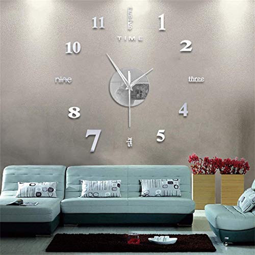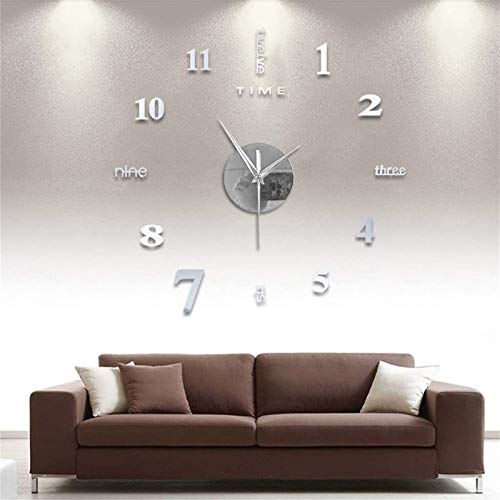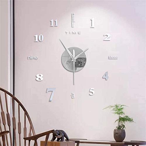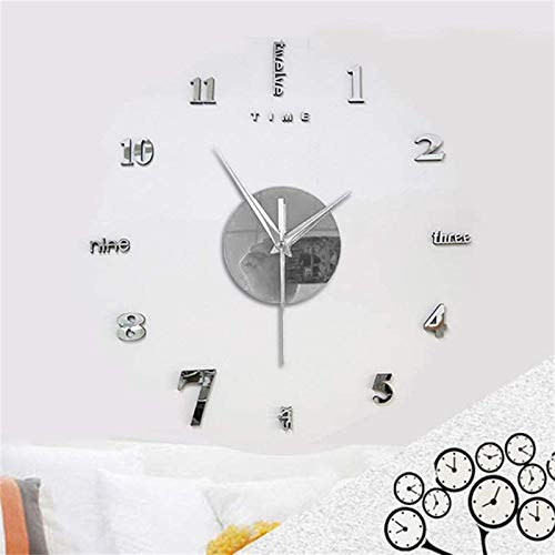CHLDDHC - ساعة حائط ساكنة وعصرية للحائط، بدون اطار وبتصميم عاكس ثلاثي الابعاد لزخرفة المنزل والفندق والمكتب، تناظري، مواد مختلطة