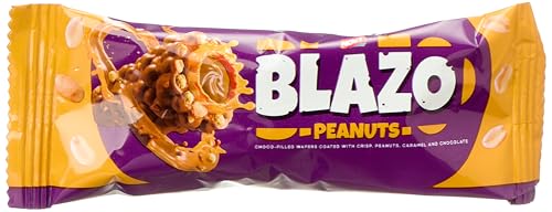 Blazo - ويفر محشو بالشوكولاتة محشوة بالفول السوداني والمقرمش والكراميل والشوكولاتة، عبوة من 12 قطعة