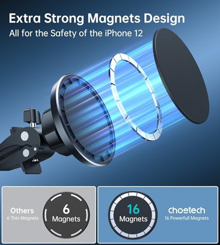 CHOETECH - حامل موبايل مغناطيسي للسيارة AT0004 - مصمم بـ 6 مغناطيسات قوية مطورة، حامل موبايل للسيارة من تشويتيك مناسب لسلسلة آيفون 12/13/14/15/16
